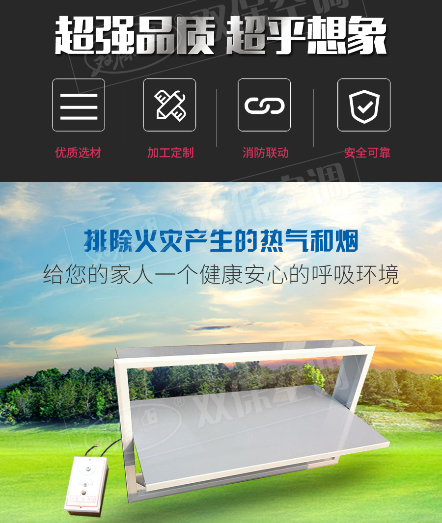 【產(chǎn)品名稱】板式排煙口                   【生產(chǎn)廠家】江蘇雙保空調(diào)有限公司