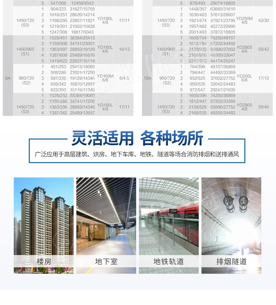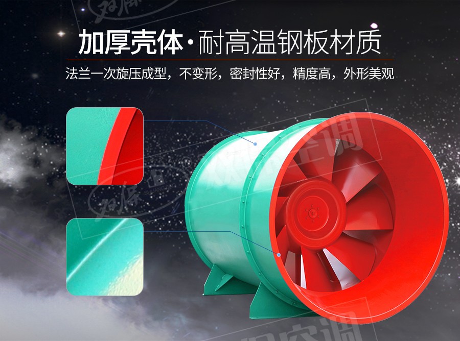 【風機特點】具有效率高、噪聲低、用途廣,平時通風接氣與火災時消防排煙一機兩用等
